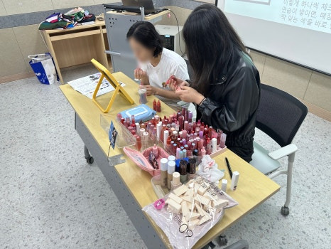 저는 이번 강연에서 특별히 립스틱 개별 발색을 통한 ‘찰떡 립스틱 찾기’ 서비스를 함께 진행했습니다. 참가자분들이 직접 립스틱을 발색하며 자신에게 잘 어울리는 색을 발견했을 때 보인 환한 반응은 매우 인상적이었습니다. 다만 아쉬운 점은, 시간 관리에 미흡한 부분이 있어 일부 참가자분들께 끝까지 도움을 드리지 못한 상황이 발생했다는 점입니다.